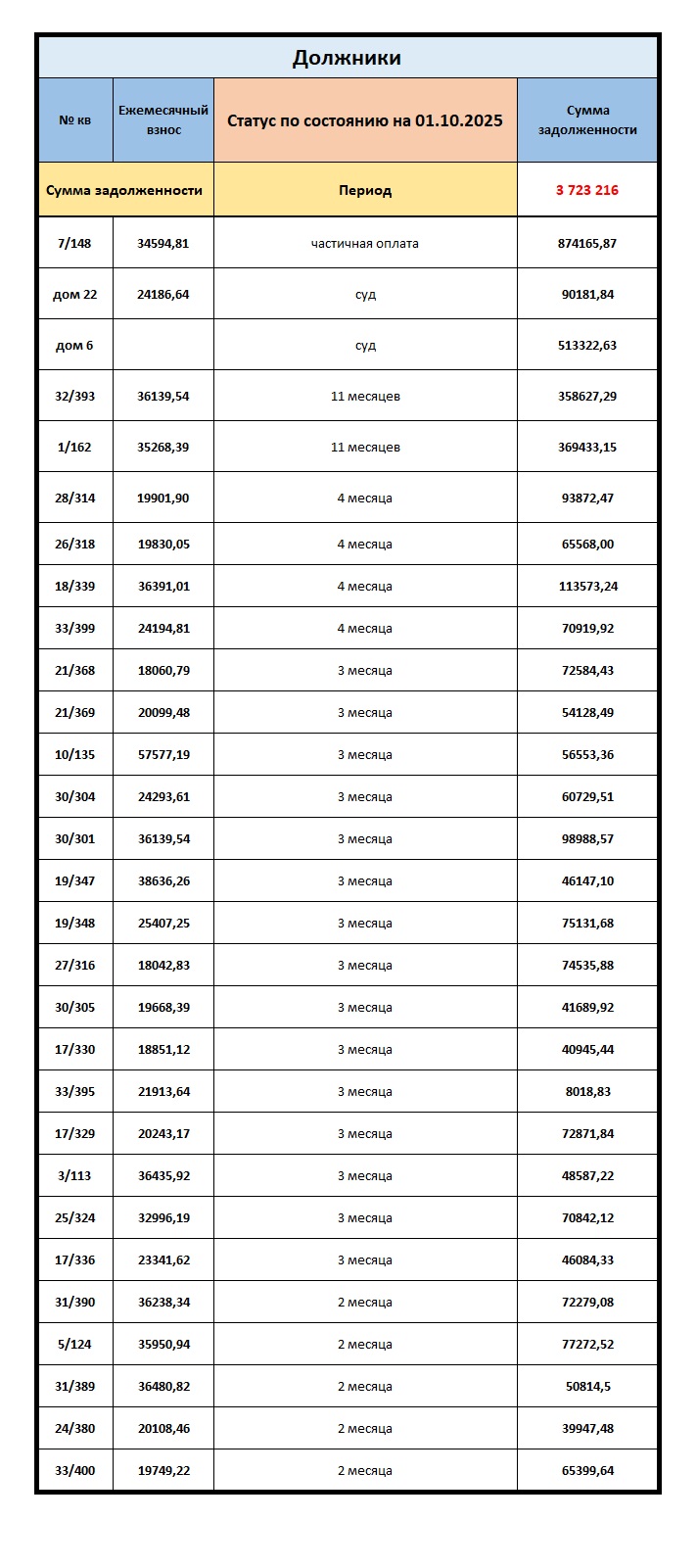 Задолженность на 03.10.2025